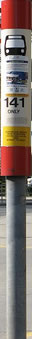 I know that going to a strange town and not knowing what things look like can throw you off, so I’ve gathered some photos to help orient you. TTC bus stops are marked by signs that look like this: