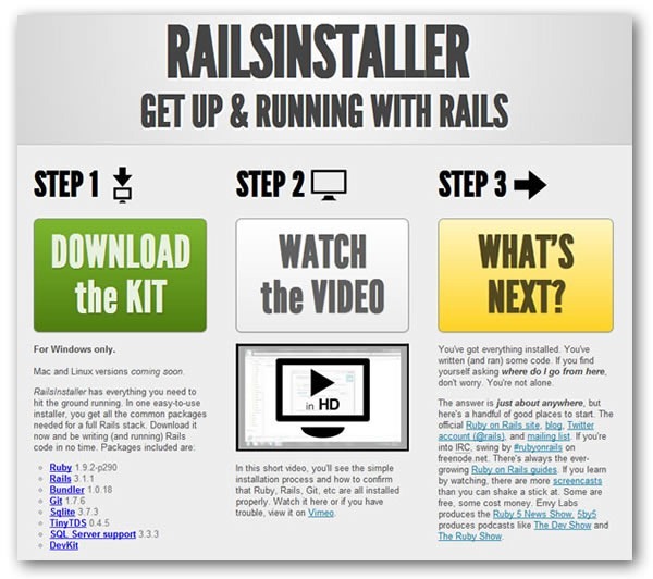 Screenshot of Rails installer site