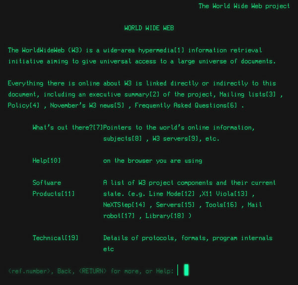 first web page in line-mode browser Post author By Joey deVilla Post date December 20, 2015 No Comments on first web page in line-mode browser Leave a ReplyYou must be logged in to post a comment.