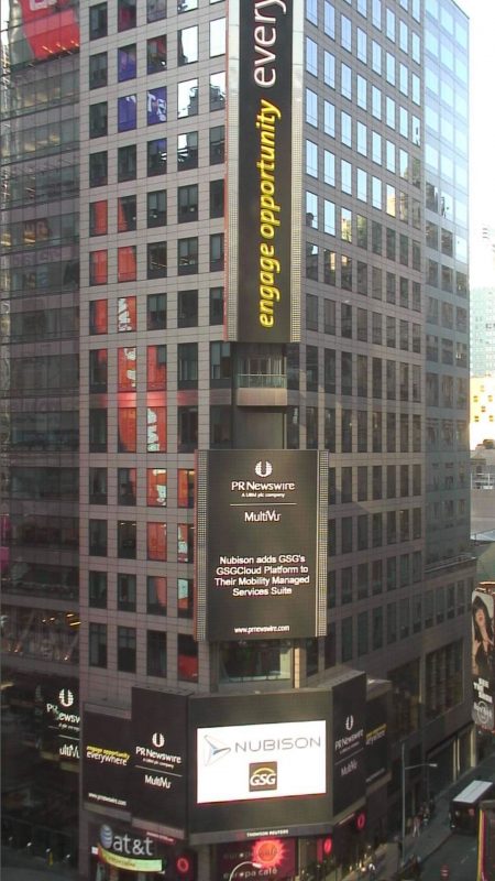 A GSG press release on a Times Square billboard. Click to see at full size.
