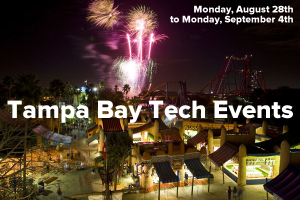 Tampa Bay Tech Events – Monday, August 28th to Monday, Septmber 4th — photo of fireworks over Busch Gardens at night.