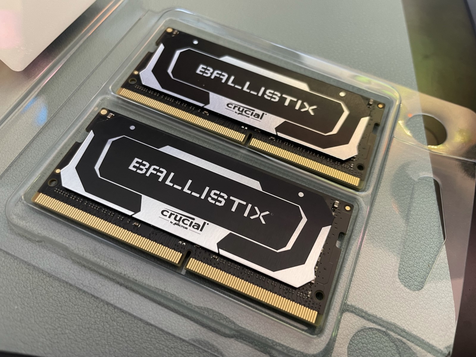 Here’s the RAM I ordered: 2 16GB SODIMMs, which bring the laptop up to its maximum supported 32 GB of volatile memory: