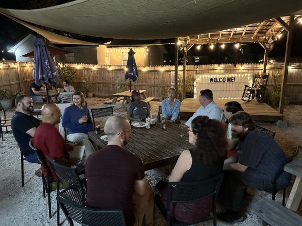 The crowd arrived soon after, the sun set, and we got down to the business of talking about all sorts of things, from ChatGPT to a business idea so crazy it just might work to Tampa’s growing scene of tech events to cycling clubs to music, and so on.