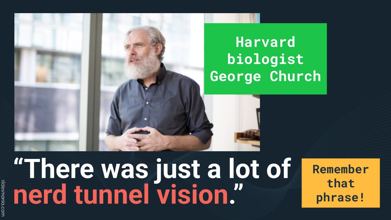 George Church, notable biologist at Harvard — what is it with these Harvard and MIT nerds? — took meetings and calls with Epstein, even after the prostitution-with-a-minor deal became public knowledge.