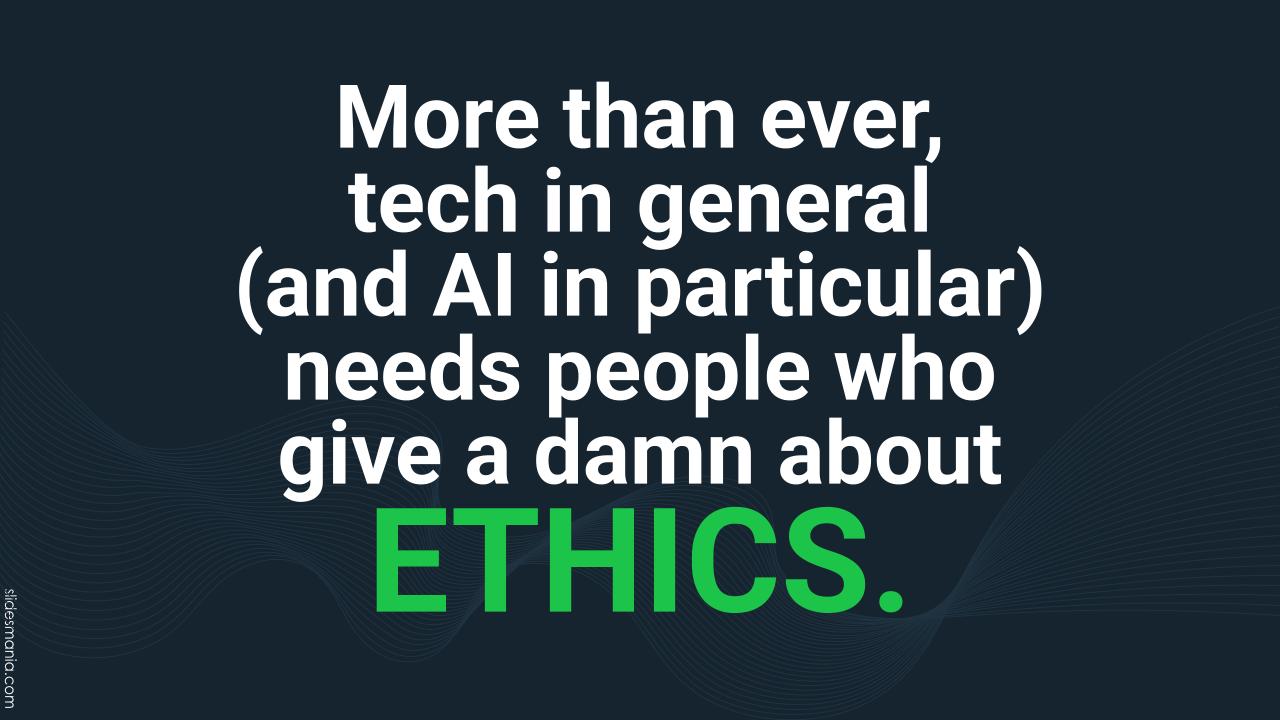 I want to flip the standard AI presentation upside-down and start with what’s often a footnote: Ethics. You’ll find that there are some AI “thought leaders” actively fighting against AI ethics, claiming that it’s an unnecessary restriction of progress (and I’ll name and shame one in a few slides).