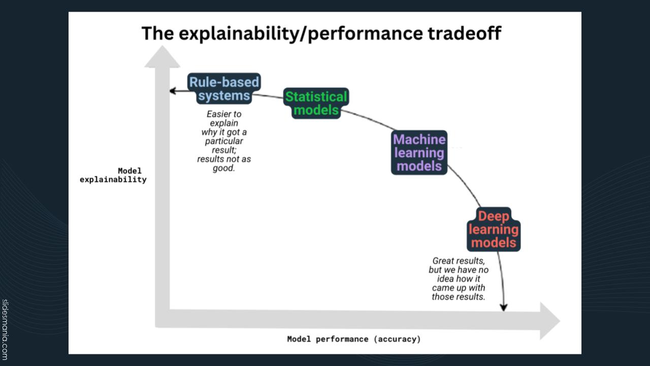 One of the big challenges of AI is explainability, which is the ability to show how an AI came to a decision in a way we can understand and trust. The challenge is that simple AI systems are explainable, but aren’t terribly impressive. The more complex an AI becomes, the less explainable it is.