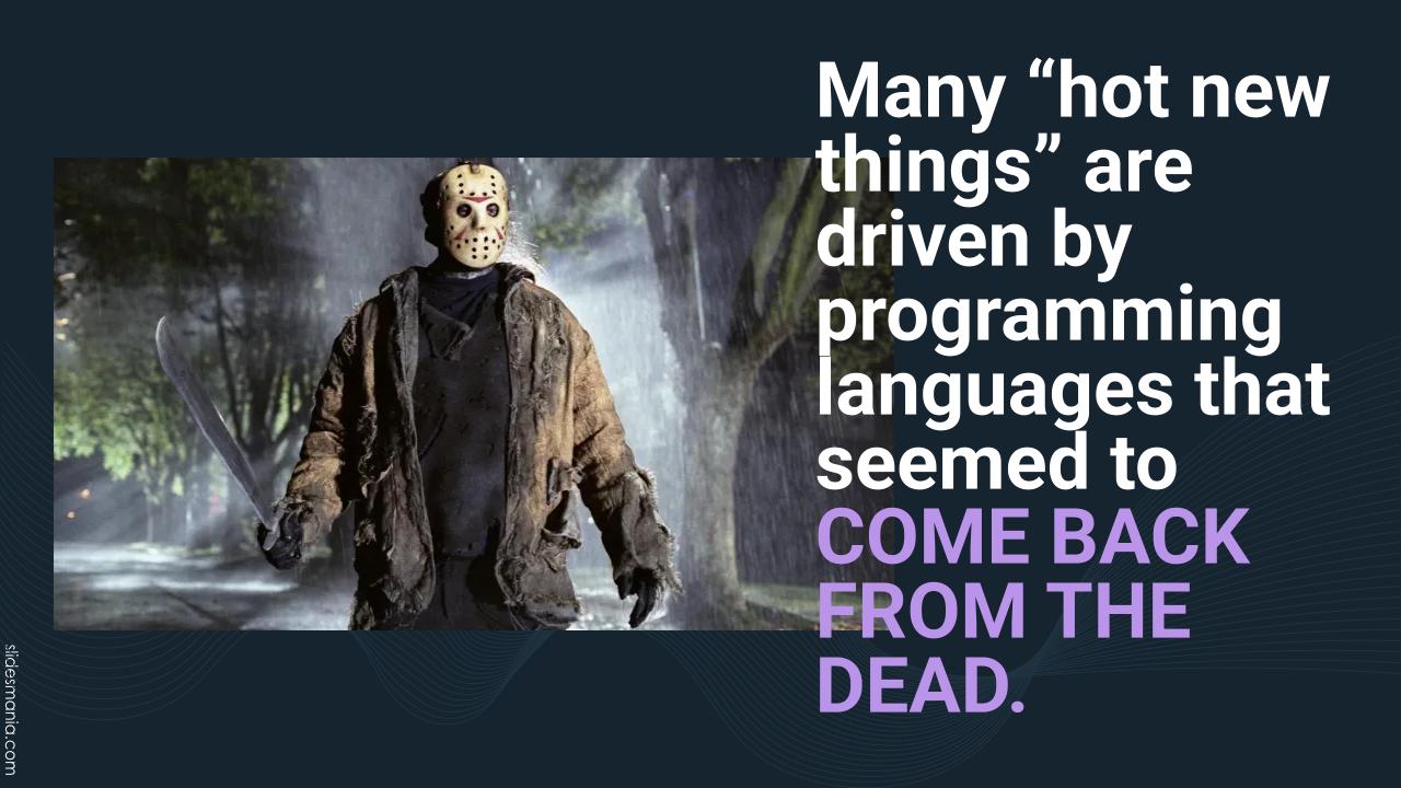 Python was introduced in 1991 but was constantly overshadowed by other programming languages — first by Perl in the late 1990s, when web developers adopted it heavily before switching to PHP. Then, in the late 2000s, it was eclipsed by Ruby, thanks to Ruby’s killer app, Ruby on Rails.