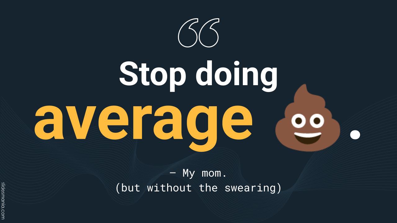 STOP DOING AVERAGE SHIT, like my mom says — but minus the swear word.