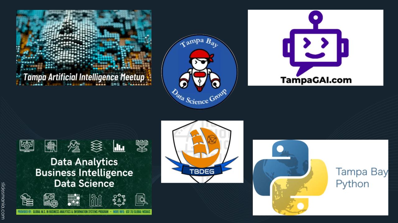 - Tampa Bay Artificial Intelligence Meetup, which I organize