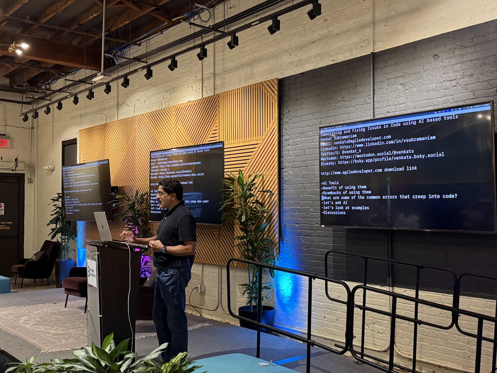 Venkat demonstrated several scenarios where code looked correct but had problems that weren’t immediately apparent, and showed how AI helped (or didn’t).