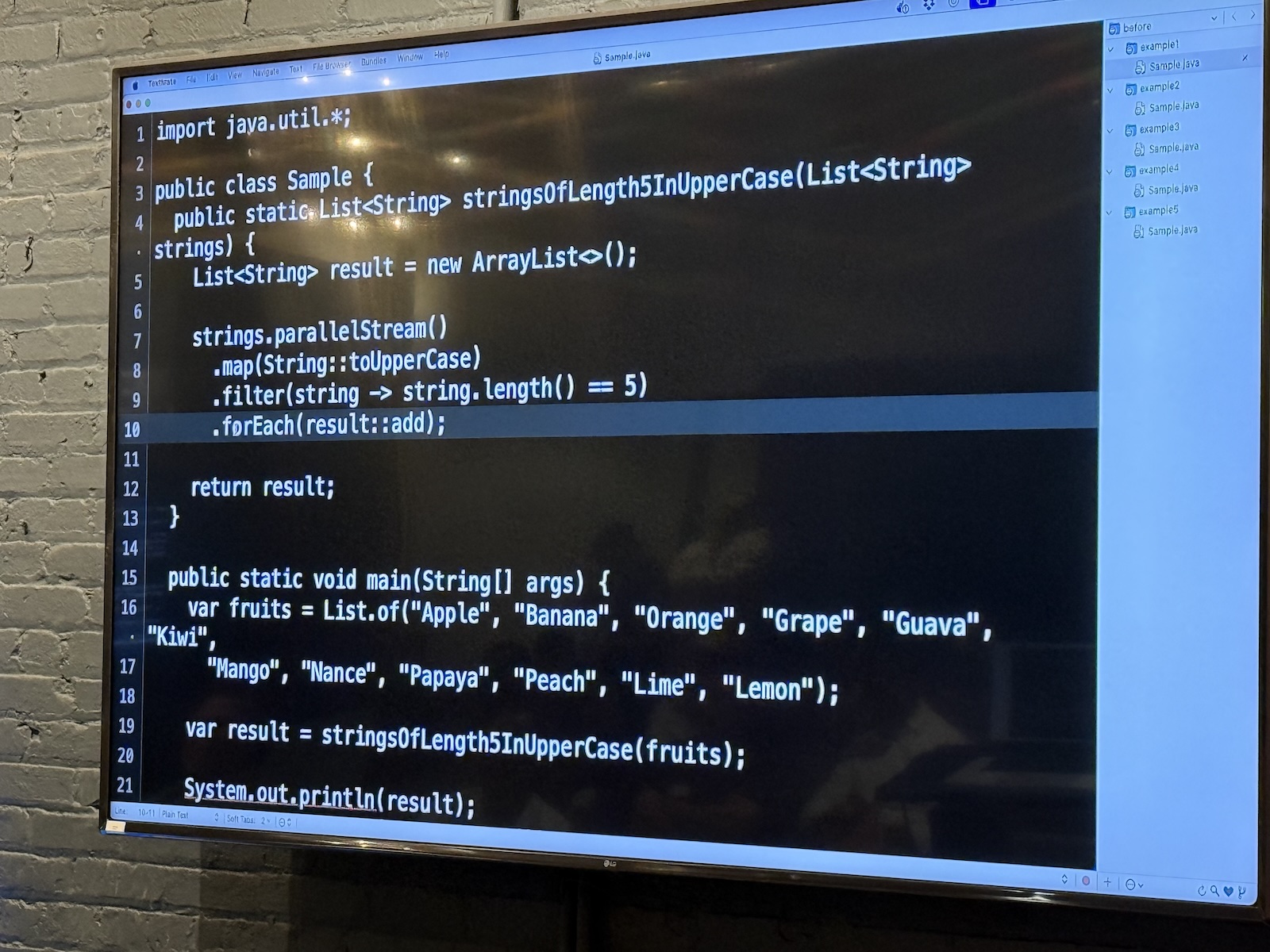 Venkat fed the code to Claude and asked what was wrong with it, and after a couple of tries (because AI responses aren’t consistent), it identified the problem: creating a side effect in a stream and relying on its value. It suggested using a collector like toList() to capture the the 5-character fruit names; it’s thread-safe.