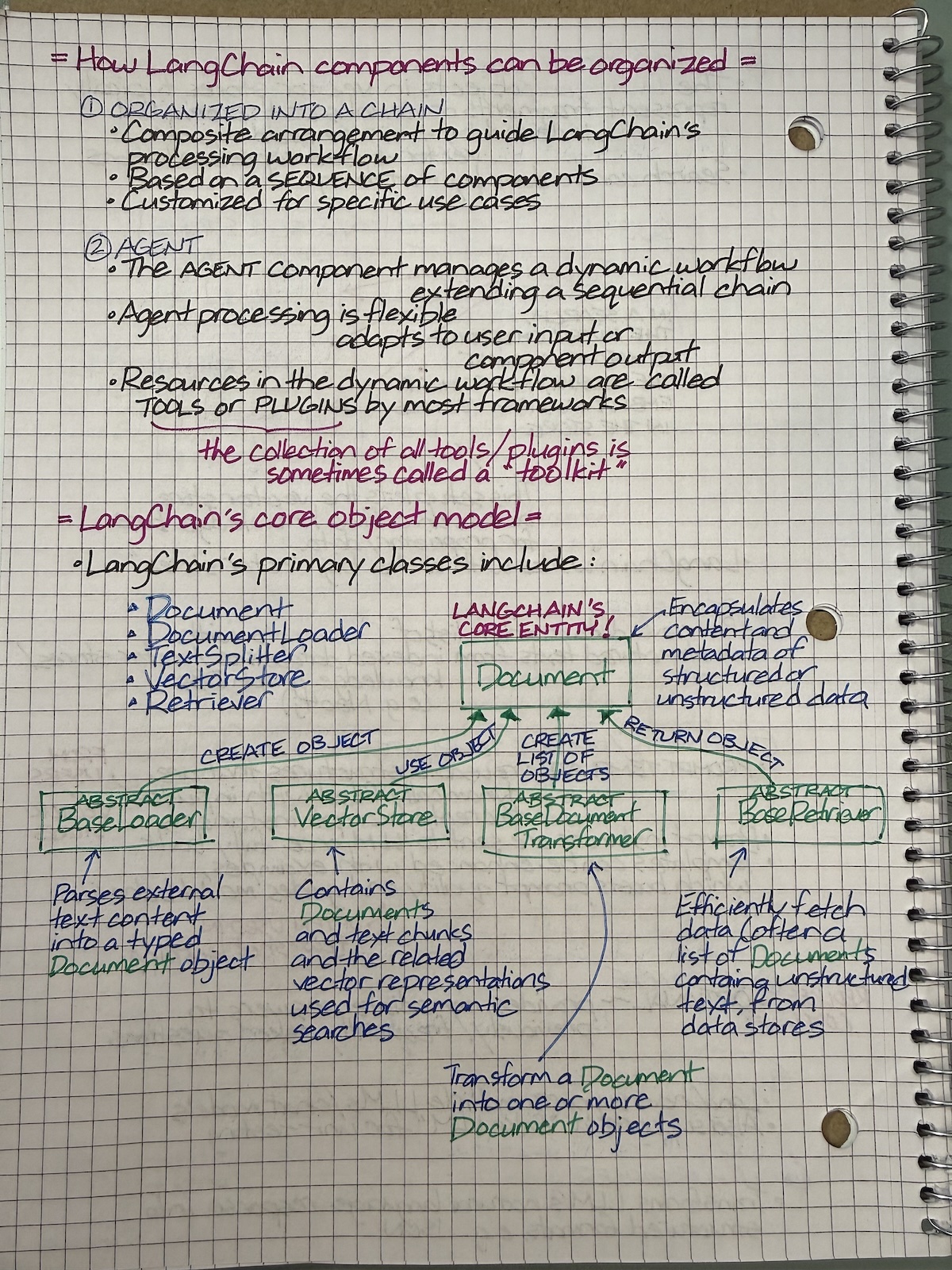Because some people asked, and because I’m going to be busy for the next day (I’ll explain later), here are more shots from recently-added pages to my notebook. These are notes on RAG and LangChain, taken and condensed from a couple of books, a couple of online sources, and my own experimenting with code. Enjoy!