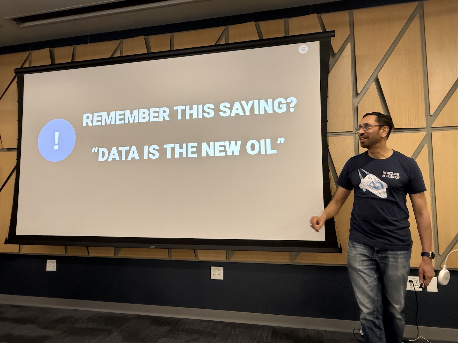 Pratik described the evolution of his own download analytics system as a concrete example. It started as “AI bolted on,” with a natural language interface that let people query a Spark cluster without writing SQL. Useful. Not native.