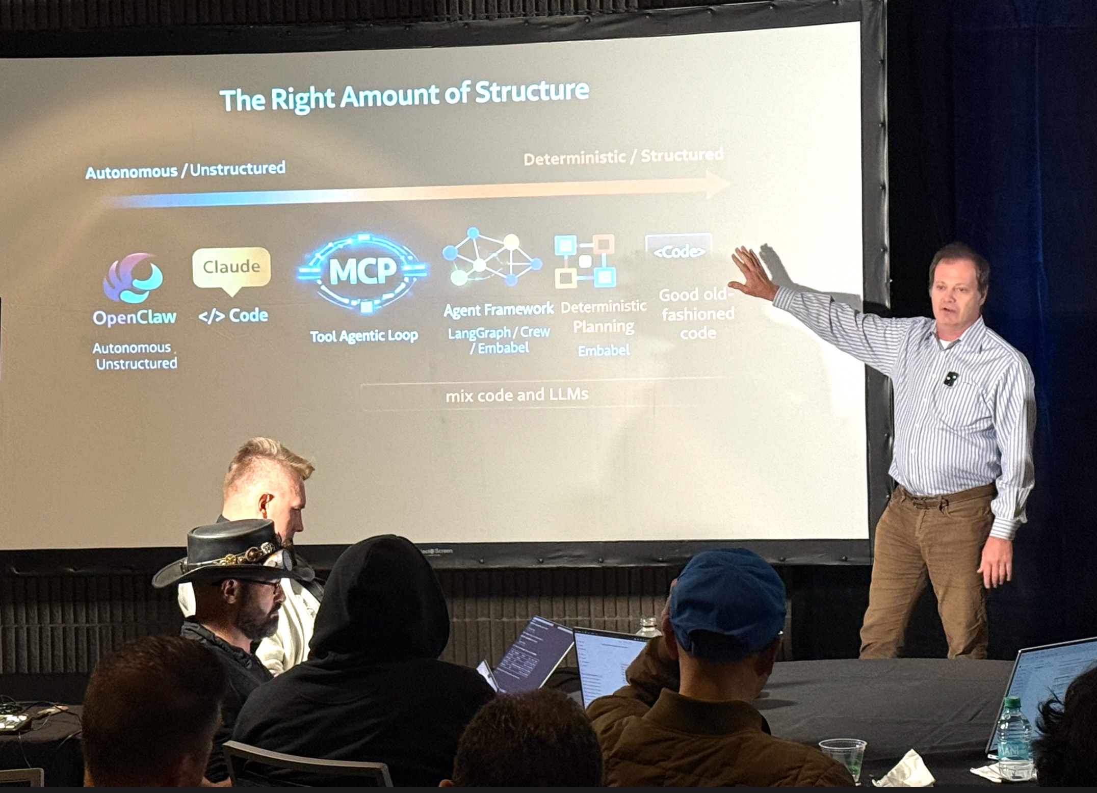 Perhaps the most technically counterintuitive point in Rod’s talk was his argument that interacting with LLMs in natural language is often the wrong approach. Yes, LLMs are trained on vast amounts of natural language text, but the underlying Transformer architecture is fundamentally about predicting tokens. It’s not inherently about language at all. The seductive thing about natural language interfaces is that you can demo them impressively in minutes. The unsettling thing is that natural language is ambiguous, extremely difficult to test, and essentially opaque when something goes wrong.