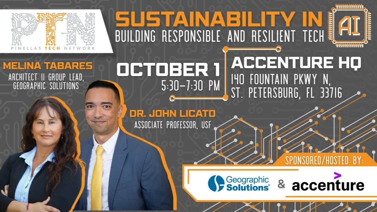 Wednesday at 5:30 p.m. at Accenture (St. Pete): Join Pinellas Tech Network for Sustainability in AI: Building Responsible and Resilient Tech, an evening of insight, networking, and discussion on the intersection of artificial intelligence and sustainable practices.